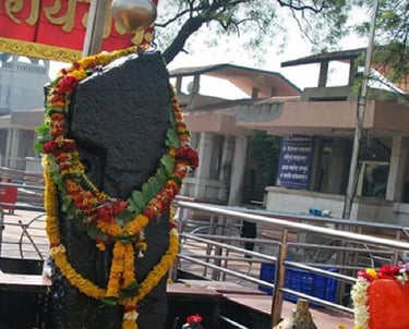 Shani Shingnapur is a village in the Indian state of Maharashtra, located in the Nevasa Taluka of Ahmednagar District. It is renowned for its temple dedicated to Shani, the Hindu god associated with the planet Saturn. The village lies 35 kilometers from the city of Ahmednagar. The temple is considered a jagrut devasthan (alive temple), meaning that a deity is believed to reside there. Villagers hold the belief that Shani punishes anyone who attempts theft. The deity here is a Swayambhu (self-evolved deity) that emerged from the earth as a black, imposing stone.