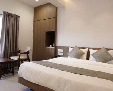 The hotel has 16 spacious air-conditioned rooms Classified into Double Bed and Royal Deluxe categories, these rooms feature Essential Commodities like Smart Internet TV, intercom, study table, cupboard, luggage rack and broadband internet connection.